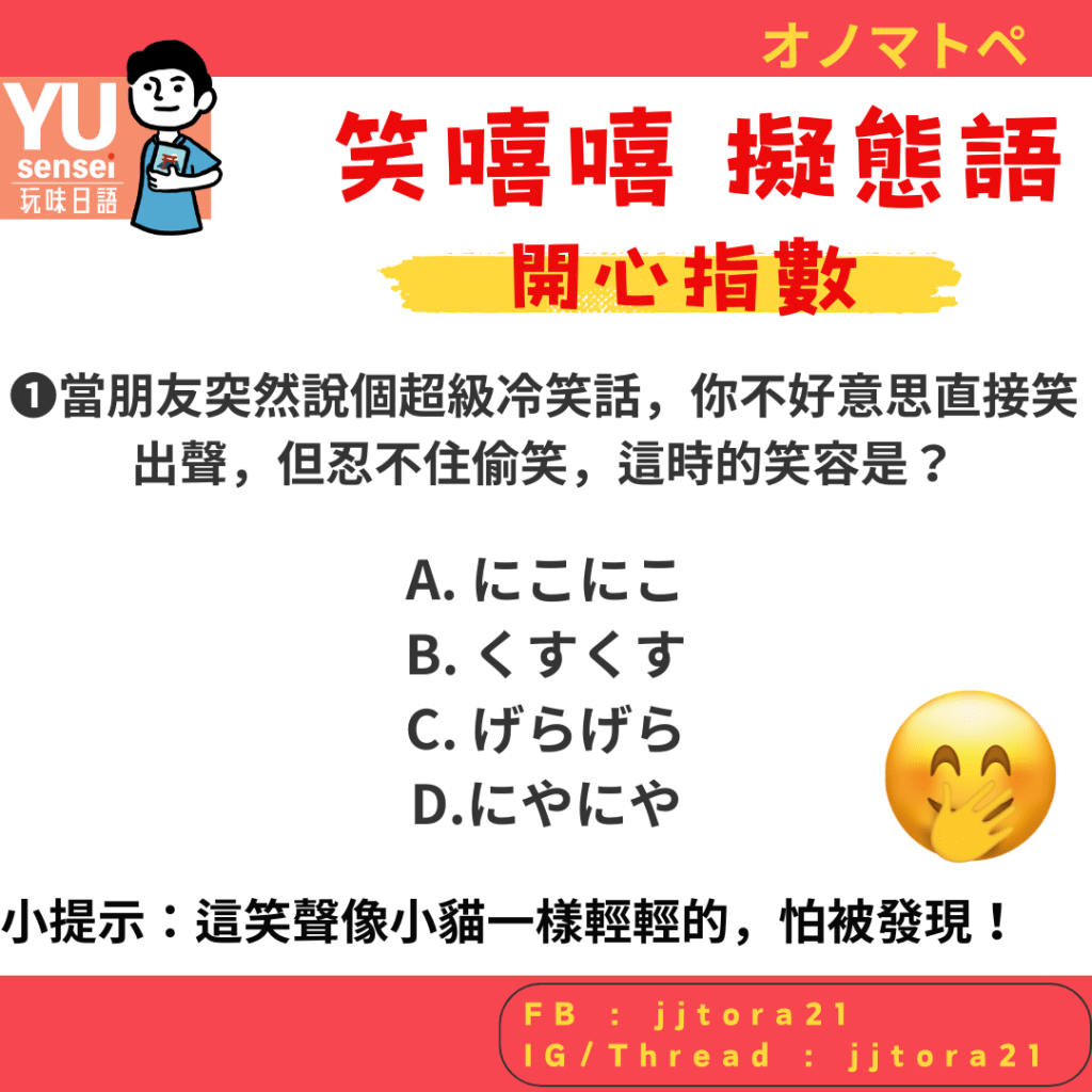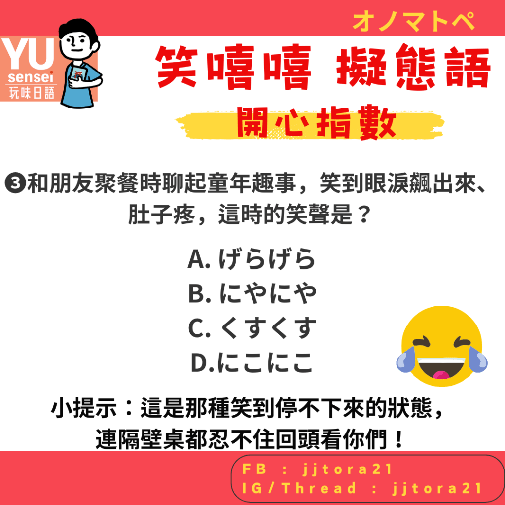 答對幾題的你,也快留言告訴我吧~YU老師陪你一起げらげら學日語!